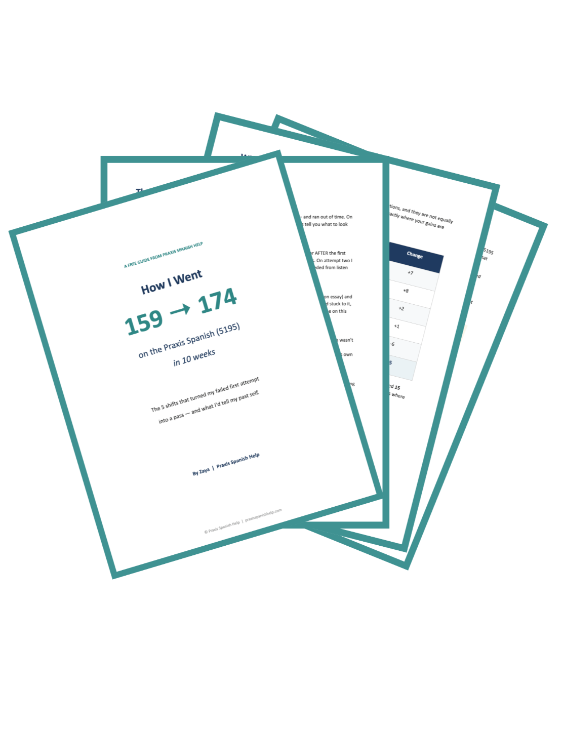 Get my free guide, “How I went from 159 to 174 on the Praxis Spanish in 10 weeks,” and pass the test with confidence with us.